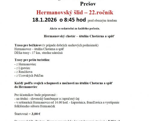 14:00 v Hermanovciach bude pripravená teplá polievka a kultúrny program.
